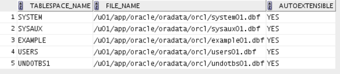 select tablespace_name,file_name,AUTOEXTENSIBLE
